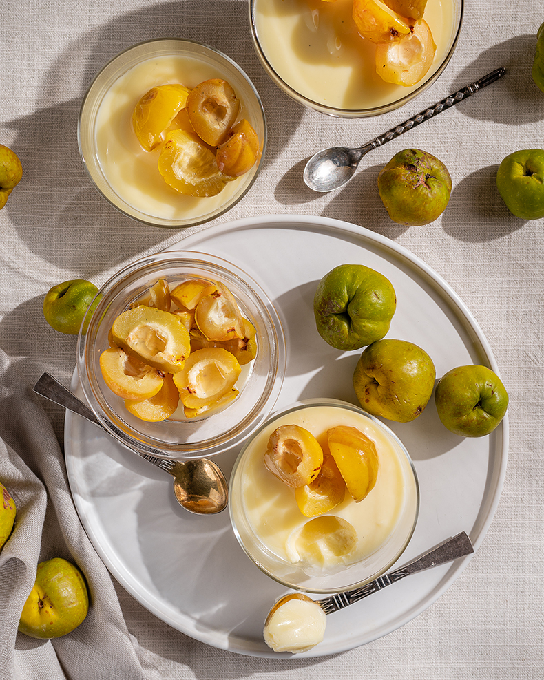 Kuna sain ootamatult õnnelikuks kotitäie ebaküdooniate omanikuks, siis otse loomulikult ebaküdooniatega posset. Ahjus küpsemisel annavad ebaküdooniad lisatud sidrunimahlale päris palju maitset ja sobivad hiljem oma kena kollase tooni ja täiendava hapusurakaga ka magustoitu kaunistama. Vähemasti minu arvates. Aga sidruni-/laimiposseti juhise panen ka igaks juhuks alla kirja, sest aed ega naabrid ilmselt igal ajal nii helded pole. Sellise universaalposseti kaunistmiseks võib kasutada nii marju, pähkleid, küpsisepuru, minibeseed või mis iganes endale parasjagu kõige õigem tundub.